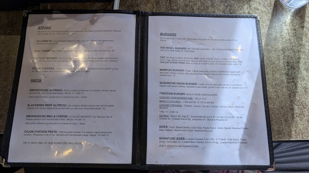If you're in the mood for mouthwatering barbecue and hearty burgers, look no further than the Rebel Smokehouse And Burgers Menu. Nestled in the heart of Mullens, WV, at 200 Howard Ave, this local gem is a must-visit for anyone craving a flavorful and satisfying meal. The menu is packed with a variety of smoked meats, from tender ribs to juicy brisket, all cooked low and slow to perfection. Their signature burgers are stacked high with fresh toppings and bold flavors, sure to satisfy any appetite. Whether you're after a quick bite or a full meal, the Rebel Smokehouse has something for everyone. So, grab your friends, come hungry, and get ready for an unforgettable dining experience.